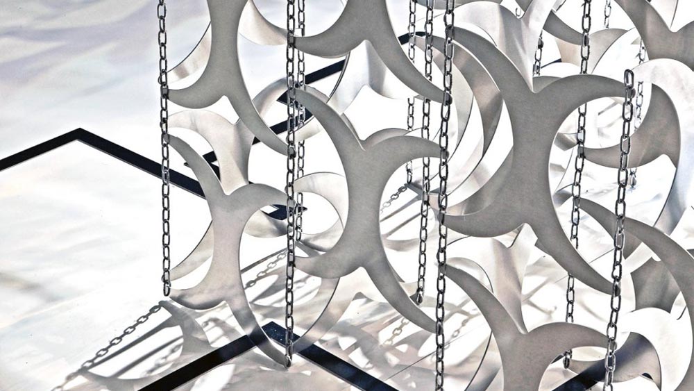 Element, an exhibition held at Tokyo Opera City Gallery in 2010, was an experiential show based on Cecil Balmond’s exploration of nature, geometry, pattern and space. Exhibiting large-scale works such as H_Edge and Danzer, alongside photographs, video and drawings, Balmond created an exhibition that ignited the senses – inviting the visitor to use their body, rather than information, to gain understanding.
